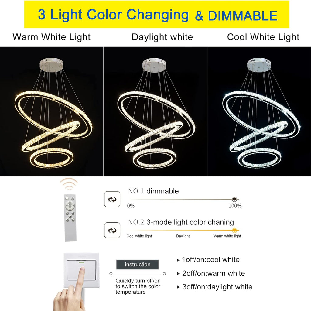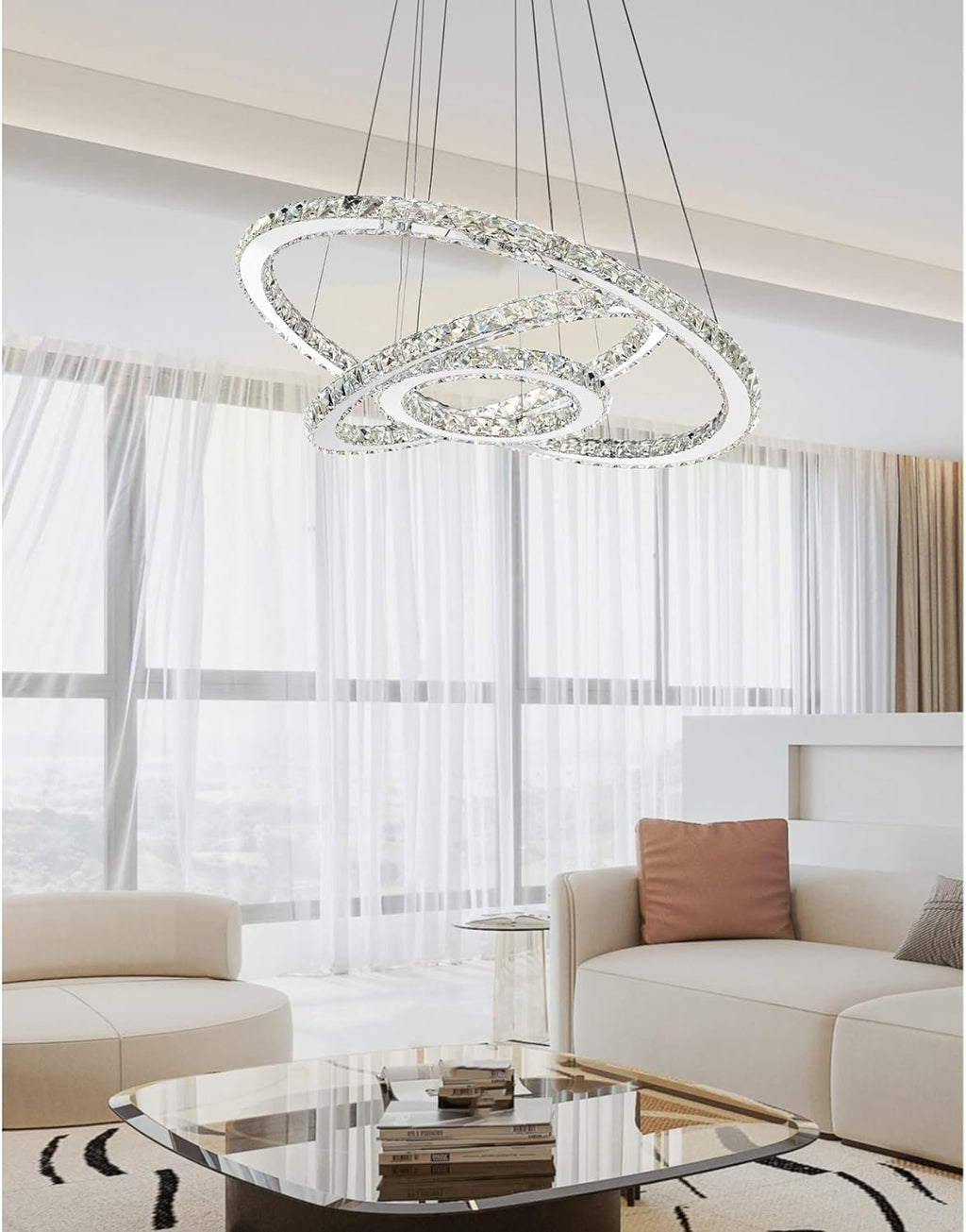 - This circle crystal chandelier features a timeless, classic, and unique design.