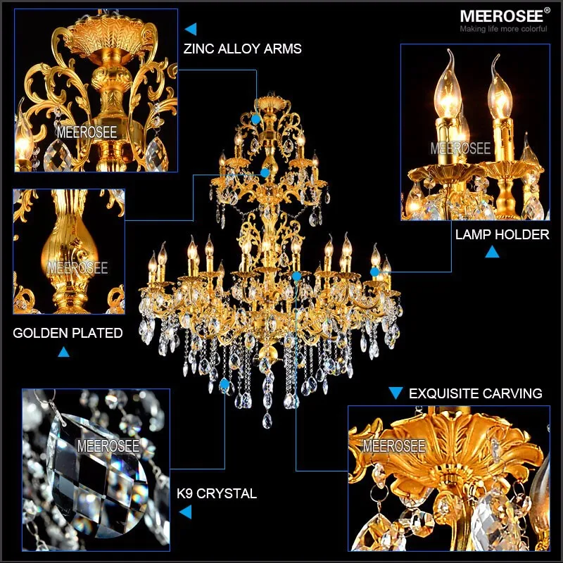 Traditional Crystal Gold Chandelier Light Fixture Luxurious Bronze Pendant Lamp 3 Tiers 29 Arms For Living Room Hotel Parlor