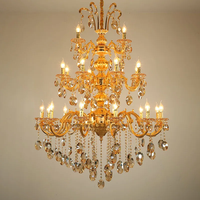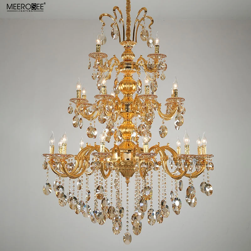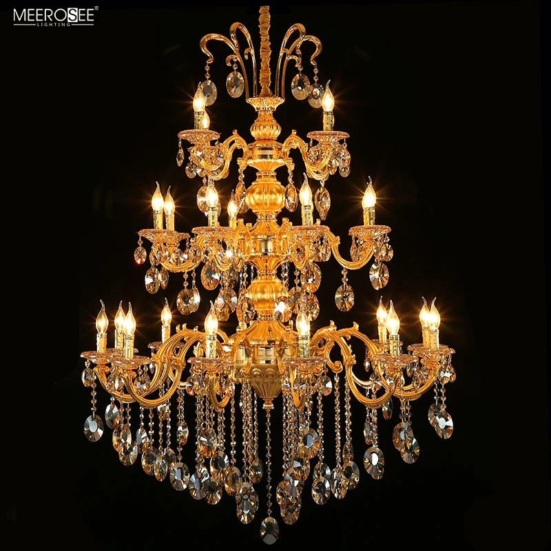 Meerosee Gold Crystal Chandelier Lights Lampara de techo Lustre Lampadario Hanging Suspension Lamp home appliance Lighting