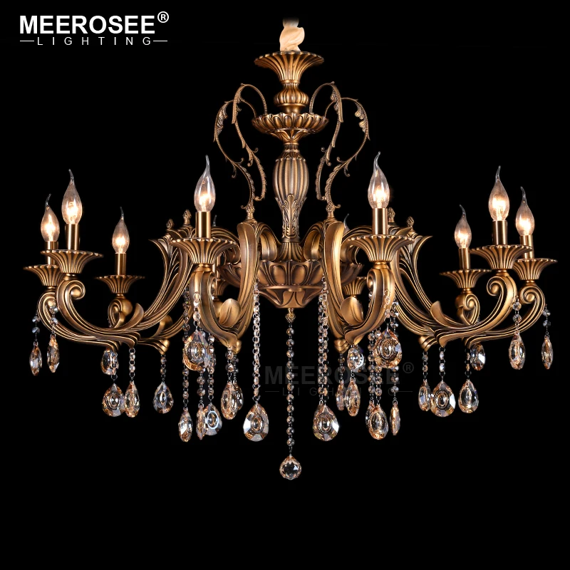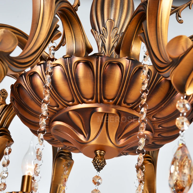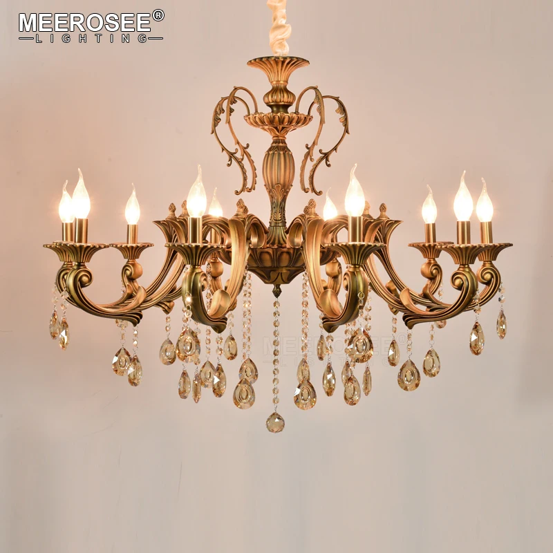 10 Heads Brass Chandelier Light Fixture Antique Brass Pendant, Vintage Copper Crystal Lamp Lustres Lighting 100% Guaranteed