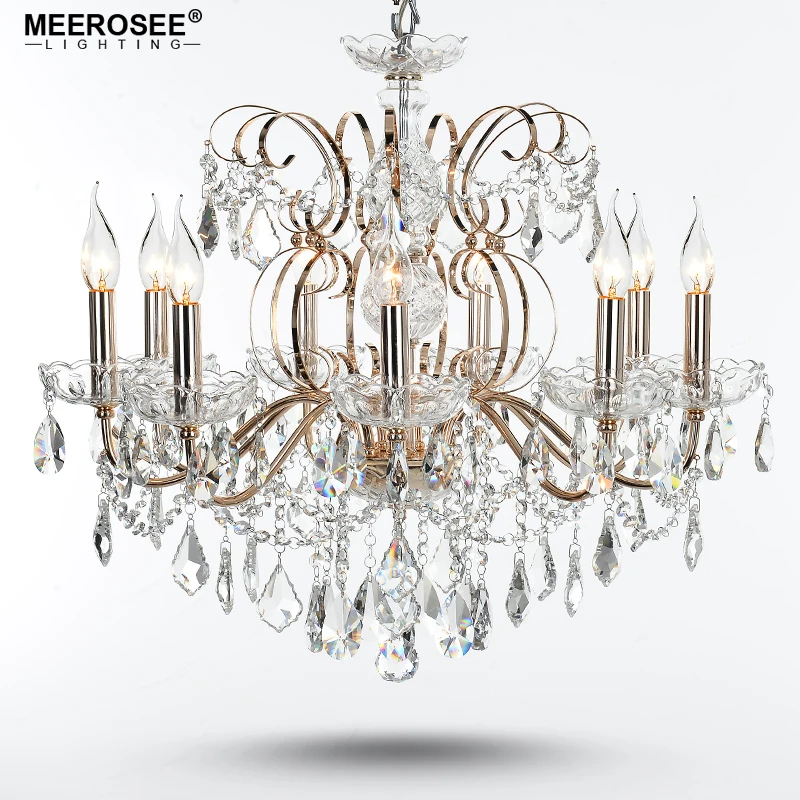 MEEROSEE Modern Chandelier Light Crystals Hanging Lamparas UL Lustre Lighting Fixture Luminaires Suspension Foyer Living Room