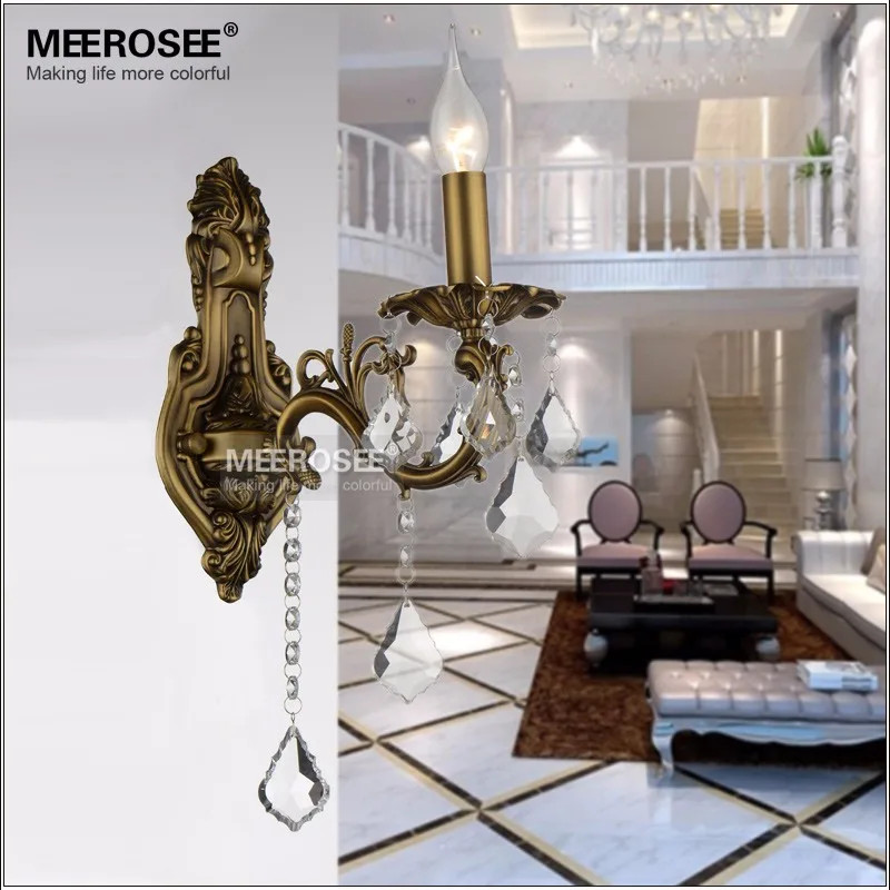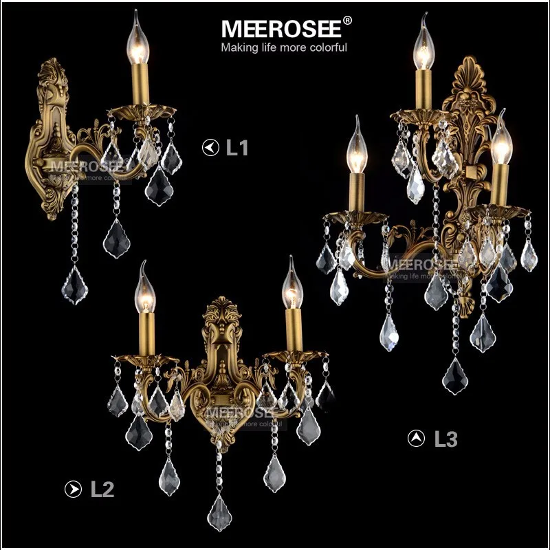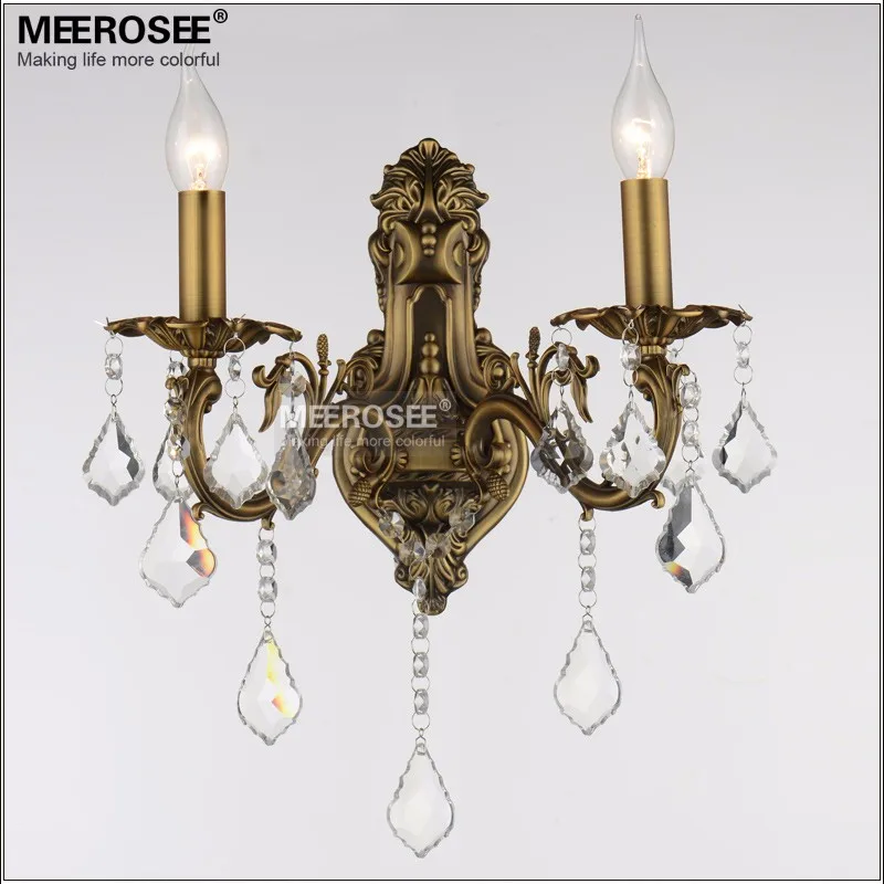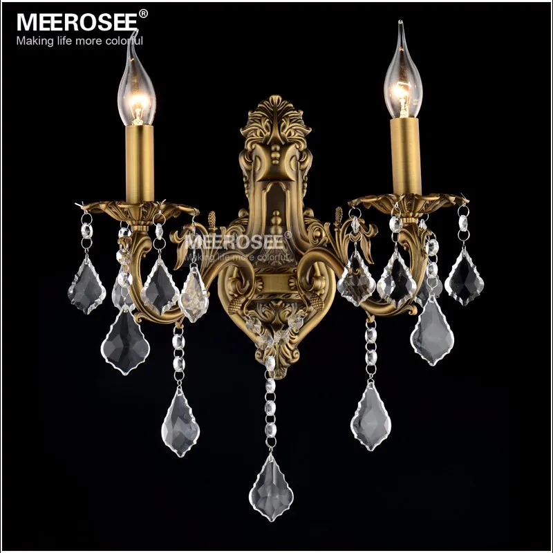 100% Guarantee Crystal Wall Light Brass color Wall Sconces Lamp Bronze Wall Brackets Light for bedroom living room