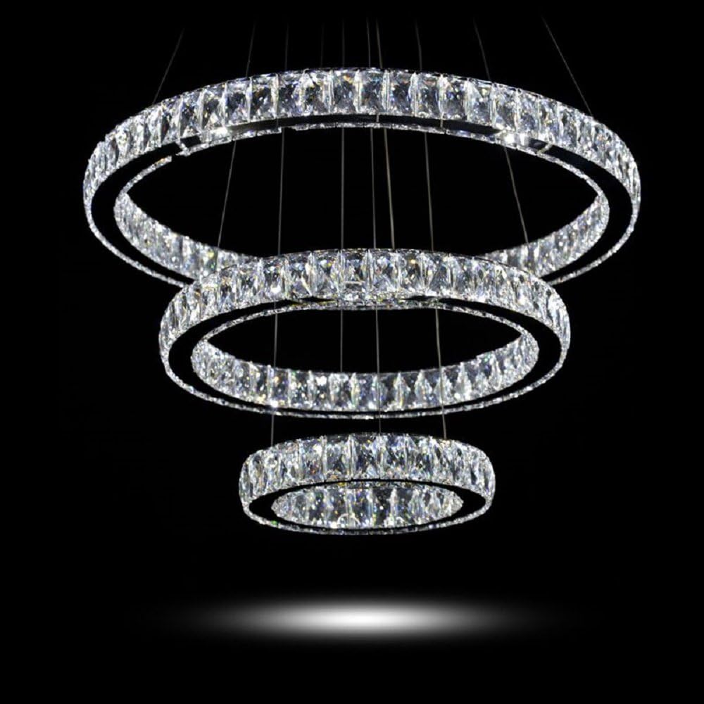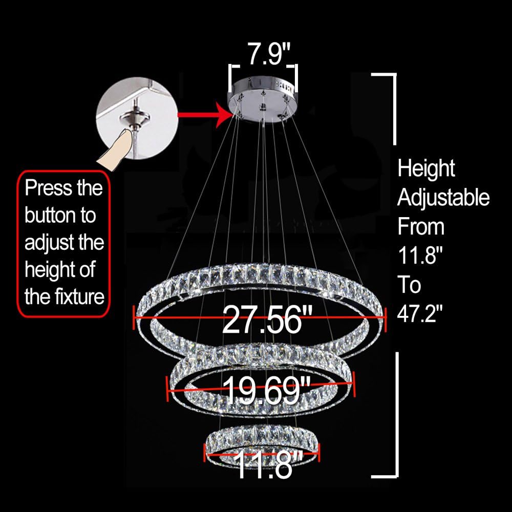| Model Name | MEEROSEE Modern Crystal Chandelier Lighting Ceiling Light Fixture LED Contemporary Adjustable Stainless Steel 3 Rings Chandeliers Lights (Big Crystal) |