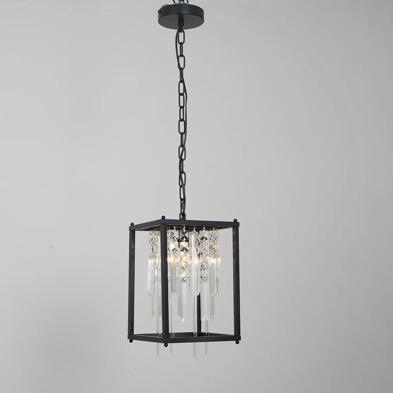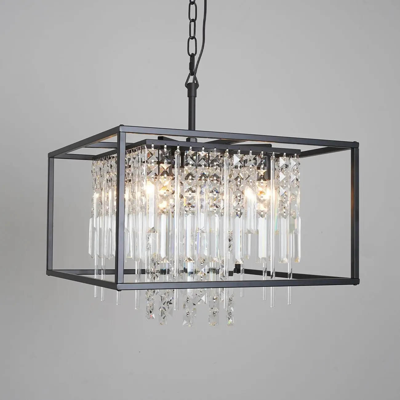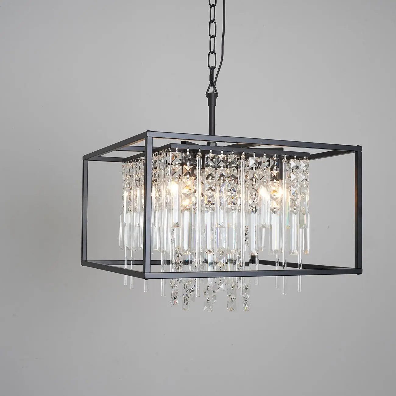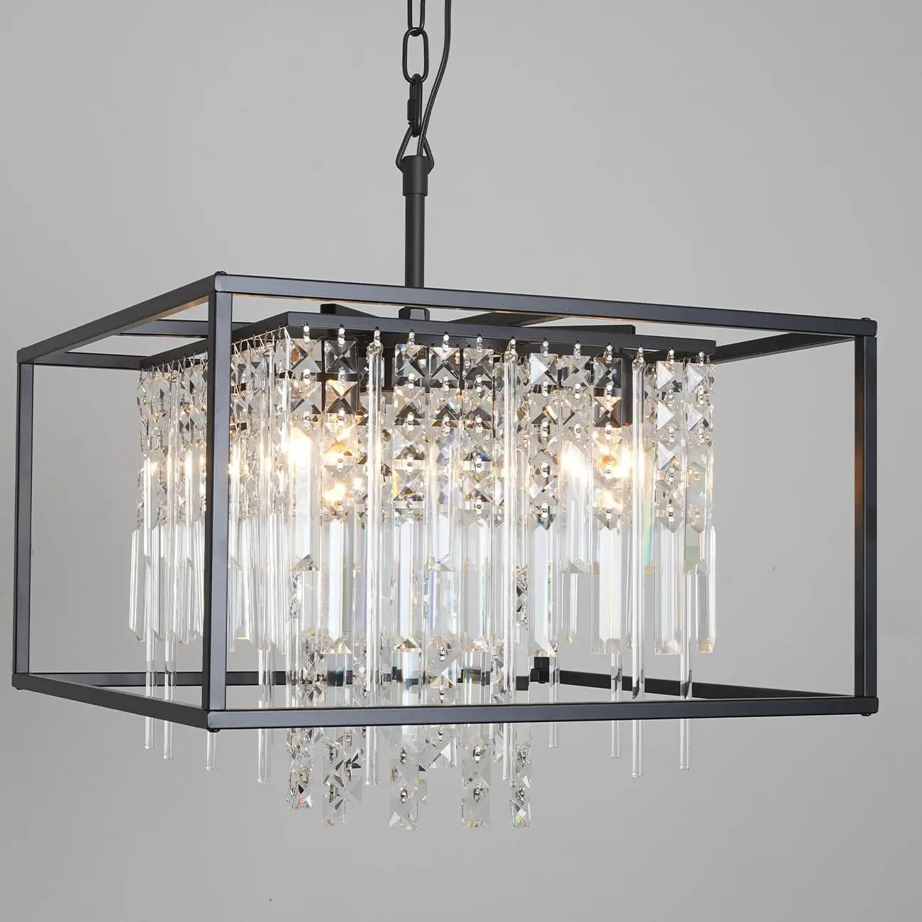 Modern Farmhouse Black Crystal Industrial Pendant Light Fixture Luxury Square Chandeliers Ceiling Lamp for Living Room Bedroom